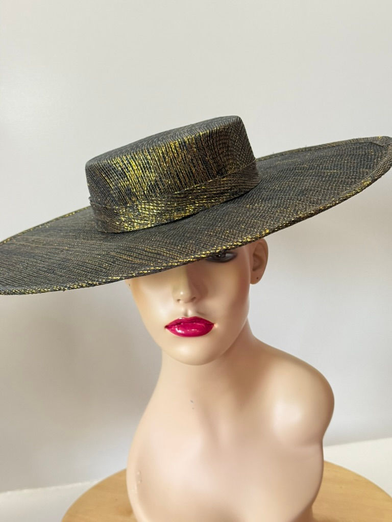 Black Woven Hat with a Black & Cream Curl
